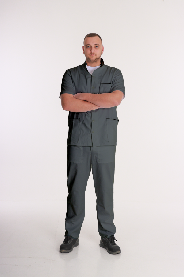lagodan i prijatan za svakodnevan rad. Model bluze je napravljen sa dugmadima na sredini i tri praktična džepa.